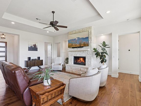 Set amid the tranquil expanse of west Georgetown—featuring no HOA and a remarkably low 1.5% tax rate—this custom build is a luxury retreat designed for flexibility, convenience, & sustainability. While near the corner of Ronald Reagan Blvd and FM 2338 the lifestyle is distinctly Georgetown, with zoning to Georgetown High School, and the brand-new Benold Middle School located just 1.2 miles away. Even newer is the Parmer Ranch H-E-B (just 1mi) and enjoy effortless access to Austin via both Hwy 183 and Ronald Reagan. Set on over an acre of land (1.15 acres), this home offers a meticulously maintained landscaped and fully fenced .62-acre yard (with an additional ½ acre beyond the fence) ready for a pool, additional garage, solar array, or workshop—whatever your vision holds. Enjoy flexibility with 4 or 5 bedrooms, 3.5 bathrooms, and multiple flex spaces including a study, dining area (pre-wired for dual-office use), a media room, and a thoughtfully isolated guest suite with a full bath. The chef’s kitchen features dual islands, premium stainless steel appliances, and abundant cabinetry—open to a spacious living area anchored by a wood-burning fireplace. The primary suite is a private sanctuary, offering dual vanities, a spa-sized super shower, and dual walk-in closets. Outside, the covered patio boasts stained wood ceilings, tile floor, and pre-installed utilities for a full outdoor kitchen. A cabana-access bath is already in place—ready for your future pool or outdoor retreat. This home is fully electric, offering a forward-thinking buyer the perfect opportunity to add solar and take full advantage of Texas sun while further reducing costs. Need gas cooking? Ask about adding a gas stub-out in the kitchen. Epoxy-finished garages, an attached equipment/storage bay, and smart irrigation with added zones complete the package. This home is a rare blend of elegance, opportunity, and location—with every element in place to create the lifestyle you’ve imagined.