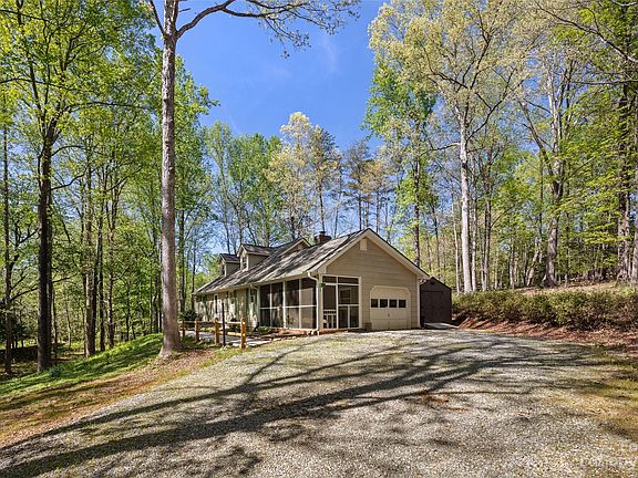 Private mountain home tucked away in a wooded paradise complete with babbling brook to enjoy year-round sights and sounds of nature.This Cape Cod style home features an expansive, newly screened front porch and peaceful back patio, perfect for quiet, lazy days or entertaining family and friends with ease. Primary suite with walk-in closet and spacious private bathroom offers the opportunity for one-level living, with 2 bedrooms and another bathroom upstairs. Sold fully furnished, this home is a turnkey dream, featuring new furniture, new shed and concrete walkways & patio, as well as a newly encapsulated crawlspace. Live in the heart of horse country, yet minutes from downtown, Columbus, Tryon, and Landrum shops, restaurants, and more.
