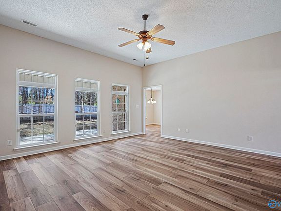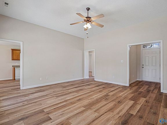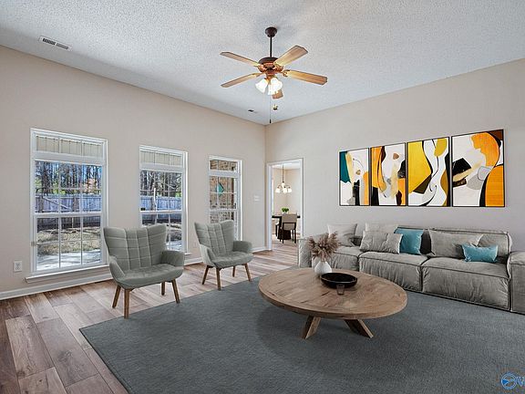 Located in Potters Mill and conveniently close to Madison City, this well-maintained 3-bedroom, 2-bathroom home offers a functional floor plan with fresh paint and new flooring throughout. The inviting living room boasts abundant natural light and a 10-foot ceiling. The dining area flows seamlessly to a covered back patio, while the kitchen features ample cabinetry, a pantry, and generous counter space. The spacious master suite includes a double vanity, soaking tub, and separate shower. Enjoy the private, fenced backyard—perfect for entertaining!