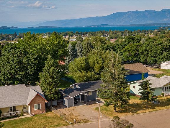This home is 1728 sq ft and has 2 bedrooms and 2 bathrooms with two bonus rooms and a large entertainment room downstairs. There is projector paint on the wall downstairs for movie nights. Master is on the main floor. This home has a fabulous deck off the back that feels very private and has views of the Mission mountains and seasonal peek-a-boo views of Flathead Lake. The house comes with a fenced yard, carport, 3 sheds and an insulated and heated one car garage made into a shop with shelving all around. Roof was replaced 5 years ago. Close to the lake, main street, restaurants, coffee shops, post office, the hospital, schools, walking paths and more! Do not miss this! Contact Sheila Gingras at 406-291-1525, or your real estate professional.