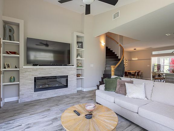 Welcome to your new corner cutie! This 4-bedroom, 2.5-bath home is perfectly set on a corner lot surrounded by tall pine trees at the top of Tahitian Village, offering both privacy and charm. Inside, you’ll find a spacious, open-concept floor plan—ideal for everyday living and entertaining. A bright sunroom off the kitchen and dining area adds a flexible second living area, perfect as a playroom, game room, or cozy retreat. The primary suite is conveniently located downstairs, complete with its own cozy fireplace. A second fireplace in the living room adds warmth and charm to the main gathering space. Three additional bedrooms upstairs provide room for family, guests, or a home office. Practical touches include a laundry room tucked just off the half bath downstairs, and thoughtful design throughout. With its peaceful setting, airy layout, and versatile spaces, this home brings together comfort and convenience in one of Bastrop’s most beloved neighborhoods.