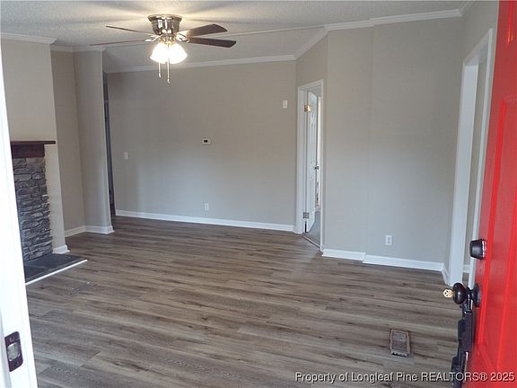 Welcome Home!   This completely renovated 3-bedroom, 2-bathroom home is situated on a generous lot just under an acre.   The list of updates is long!   New roof (2025); new laminated vinyl plank flooring, light fixtures, bright LEDs in kitchen and bathrooms; a spa-like soaking tub and tiled shower coupled with a beautiful double vanity in the master for you to share.  All NEW kitchen cabinets and countertops complimented by new stainless-steel appliances; Carpeting in all the bedrooms. And WOW! is this going be efficient for its new owners...  New vinyl windows, and the complete floor system has new insulation with a plastic barrier added, all to better control temperatures and lower your electrical bill! The plumbing supply lines have been updated with new fixtures as well...  Plus, new sharp black gutters that accent the home.  Easy commute to base or Raleigh, Grocery Stores, Restaurants and more.  Its ready for its new owners to enjoy this home with no maintenance for long time.