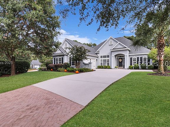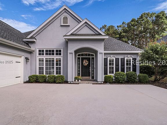 Welcome to 104 Keller Springs! Located in the gated community of Baynard Park, this exceptional 3 bedroom, 2 bath plus dedicated office sits on a highly desired cul-de-sac overlooking a very private wooded setting. Open concept living, double crown molding, gleaming hardwood floors throughout. Large fenced yard contains 2 gates, pavered patio with fire pit and container garden, hardwired landscape uplighting. Relax in the screened and tiled lanai, enjoy the tranquility! New serene spa-like ensuite bath, walk-in closet, beautifully tiled zero entry shower with seating, double vanities, GE whole house water filtration system and Craftsman Professional workbench in garage, 2022 new GAF roof / 2020 new HVAC unit. Community walkway connects to River Ridge Academy (preK-8). Convenient to Old Town Bluffton, beaches and marinas of Hilton Head Island. Amenities include swimming pool, pavilion, tennis, pickleball, fitness center, basketball, playground, bocce, horseshoes, swings. Owner is SCREA.