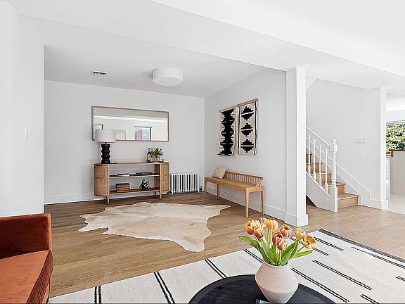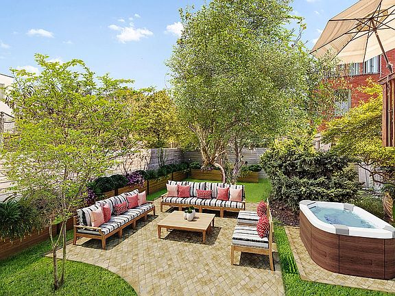 Enter the main residence on the parlor floor through a spacious foyer which opens into an sun-flooded living room that flows into the dining room and open chef's kitchen. Through the french doors is a lovely deck for grilling and al fresco dining, leading down to the huge backyard.