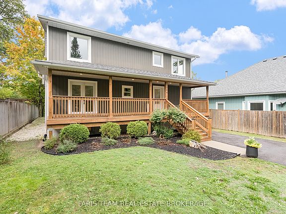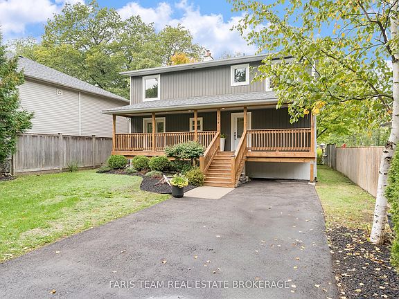 Top 5 Reasons You Will Love This Home: 1) Enjoy a generous 50'x230' lot with over 50' of waterfront, spacious backyard areas perfect for entertaining, relaxing, or heading down the stairs to kayak, boat, fish, or simply take in the river views 2) This detached 2-storey home with a finished basement features a welcoming covered front deck, main level laundry, a bright bedroom with walkout to the backyard, and a renovated 4-piece bathroom with a soaker tub and separate shower for added comfort 3) The kitchen includes stainless-steel appliances, a pantry, and dining space, while the living room offers a cozy wood fireplace with a stone surround and oversized windows showcasing peaceful backyard and river views; upstairs, the primary bedroom has a walkout to a large balcony overlooking the water, plus a third bedroom and another 4-piece bathroom, great for guests or extended family 4) Expansive basement hosting a large family room, a recreation area with rough-in for a kitchen or wet bar, a fourth bedroom, another full bathroom, and an oversized cold room ideal for extra storage 5) Set on a quiet street ending in a cul-de-sac, this home offers peace and privacy close to schools, shops, golf, ski hills, and the sandy beaches of Georgian Bay, while still being a convenient commute to Barrie and the GTA. 1,743 above grade sq.ft. plus a finished basement. *Please note some images have been virtually staged to show the potential of the home.