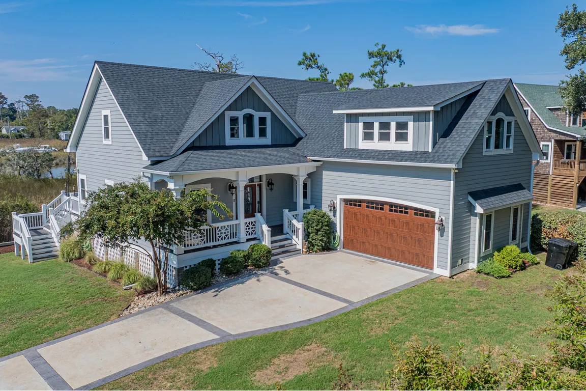 Perched high on a waterfront lot in Colington, this custom retreat was designed with every detail in mind. From the soaring 22’ ceilings and wrought iron stair rails to the solid wood doors and rich hardwood floors, the craftsmanship here is undeniable. Light floods the open living, dining, and kitchen spaces, where ...