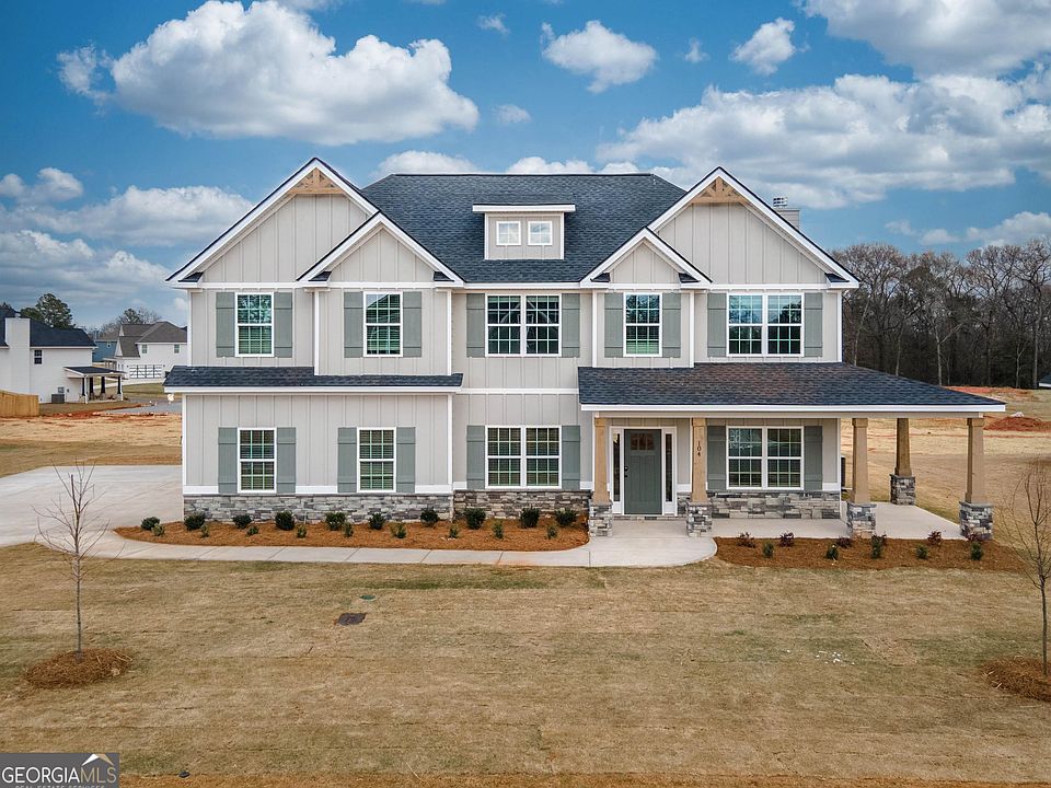 A Hughston Community. Welcome to our Harrison C Floorplan. Absolute Favorite Floorplan w/ 2778 SF of Thoughtfully Designed Living Space. Our Exclusive Knob Hill Community is filled with Charm, and Centrally located. Already Included Luxury Options such as Farmhouse Porch, Stone Wrapped Columns, Gourmet Kitchen, Upgraded Oak Hardwood Flooring, Luxury Trim Package, Luxury Plumbing Package, Gameday Patio w/ Outdoor Fireplace & Side Entry Garage are sure to Impress. ***Ask about our Included Home Automation*** Stylishly Comfortable, our Harrison Plan will Feel like Home! Inviting Foyer, Formal Dining Room w/ Tons of Detail, Flex Space ideal for Home Office, Spacious Great Room with Fireplace. Open Concept Kitchen features Luxury Built-in Stainless Appliances w/ Gas Cooktop & Stainless Vent Hood, Stylish Cabinetry, Quartz Countertops, Tiled Herringbone Backsplash. Large Kitchen Island open to the Breakfast Area. Walk-in Pantry for Additional Storage. Owner's Entry Boasts our Signature Drop Zone, as a Perfect Family Catch all. Half Bath on Main Level for Guests. Upstairs Leads to Huge Owner's Suite w/ Fireplace, Creating your own Private Retreat. Owner's Bath w/ Garden Tub, Tiled Frameless Shower, His & Her Vanities & Dual Walk-in Closets. Additional Bedrooms are Bright & Spacious. Upstairs Laundry & Hall Bath Centrally located to Bedrooms. The Oak Hardwood Flooring throughout Main Living Areas, Upgraded Trim & Gourmet Kitchen give this home a High-End Feel. Our Signature Gameday Patio w/ Wood Burning Fireplace creates the Perfect Space for Fall Football.
