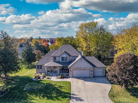 Lakefront living in the highly desirable Timber Ridge Subdivision! This spacious home sits on a .58 acre lot and offers approximately 3,600 sq ft of finished living space, including 2,200 sq ft on the main and second floors plus a 1,440 sq ft finished basement. Enjoy your own private dock with 95 feet of shoreline, beautiful views, and mature trees for natural shade and privacy. Inside, the home features 3 bedrooms, 3.5 bathrooms, a 2-story living room, solid oak 6-panel doors, a cozy fireplace, and a versatile loft area on the second floor. There is a spacious room in the finished basement that is being used as a bedroom but does not have egress. The large master bedroom with tray ceiling, located on the main floor, also features a spacious master bathroom, jacuzzi tub, walk-in shower, and a sizeable walk-in closet. The kitchen features a large island with a custom butcher block top, perfect for meal prep or casual dining. The finished basement is designed for entertainment with a bar area, pool table, and game area, making it an ideal space for gatherings. The garage includes a dedicated workshop area for projects and hobbies. Also equipped with a whole house generator. Outdoor living stands out with a lakeside poured concrete patio and pergola, updated Trex deck with cable railing, and a beautifully landscaped backyard. A 12x20 lofted shed provides additional storage or workspace. Updates include: New roof and gutters in August '25, new water heater in July '24, expanded/upgraded deck in spring of '23, central air unit replaced '17. This lakefront property combines expansive indoor living with exceptional outdoor amenities-perfect for year-round enjoyment.