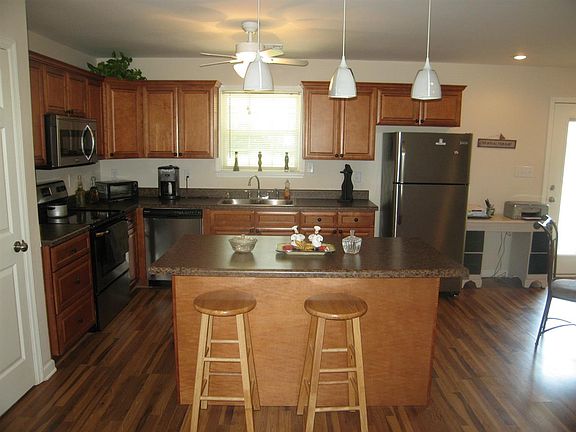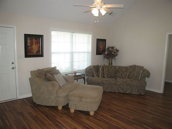3BR/2BA home on cul-de-sac lot. Open floor plan features living room with vaulted ceiling. Nice kitchen area with island and breakfast bar. Split bedroom setup. Master bathroom features a beautiful tiled shower. Laminate floors throughout. Covered patio. Fenced yard for pets or children.