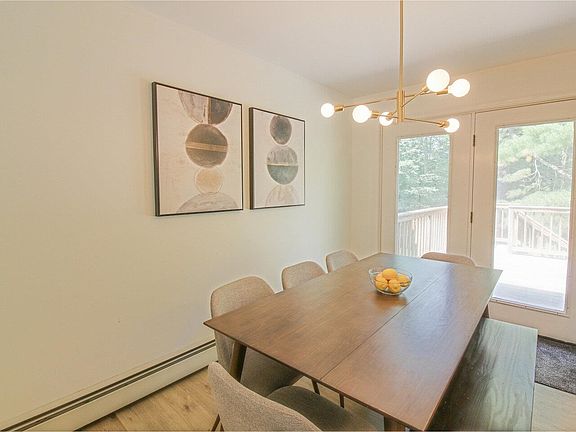 Westford stunner! Sitting on almost 2 acres and nestled at the end of a cul-de-sac, this 3-bedroom, 2-full-bath ranch was completely renovated in 2024! Step inside and find a convenient mudroom/laundry and handy sink. Continue to the spacious kitchen with SS sink and appliances, as well as lush, forest green cabinetry. The dining area is bright and sunny with glass doors to the expansive back deck. Living room has a huge front window and access to another large, newly added front deck. Down the hall, find a full guest bath and large bedroom with double closets. (Loft bed is easily removed). Primary bedroom has a built-in dresser and its own full bath with customized closet and double sinks in the marble vanity. 1,000 finished square feet has been added to the basement to create the 3rd bedroom, currently used as a fitness space, and a massive family/playroom. Gorgeous Pergo laminate flooring upstairs and Pergo luxury vinyl plank in the basement. Nice flat yard, great for gardening or play, with 2 huge decks on the front and back of the house. Lovely Westford neighborhood that abuts acres of common land and trails! Located 5 mins from Fairfax, 20 mins to Essex, and 30 mins to Burlington. Garbage and recycling included in your property taxes!