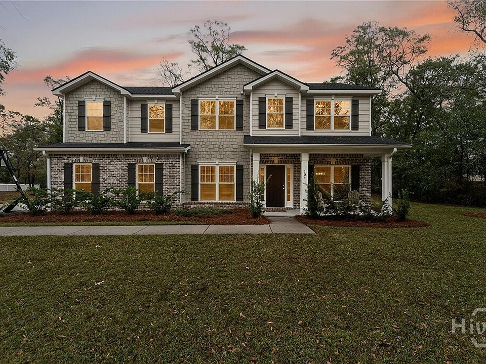 Beautiful two story home featuring brick, hardie plank, and decorative shaker siding, located in a cul-de-sac within an amenity community. This neighborhood also has sidewalks and is close proximity to schools. Built in 2023 on a 0.75 acre lot, offering large, usable front and back yards with a wooded tree-line view and mature trees. Inside, enjoy an office and separate dining room, ideal for both remote work and entertaining, plus a living room open to the kitchen. The kitchen features granite countertops, stainless appliances, an island, breakfast nook, and a large barstool area. Upstairs includes an oversized primary suite with a sitting area and an en-suite with tiled shower, separate tub, and dual vanities, along with three additional bedrooms and the laundry room. A covered back patio overlooks the peaceful yard. This home provides peace of mind with a 2-10 warranty and an assumable mortgage.