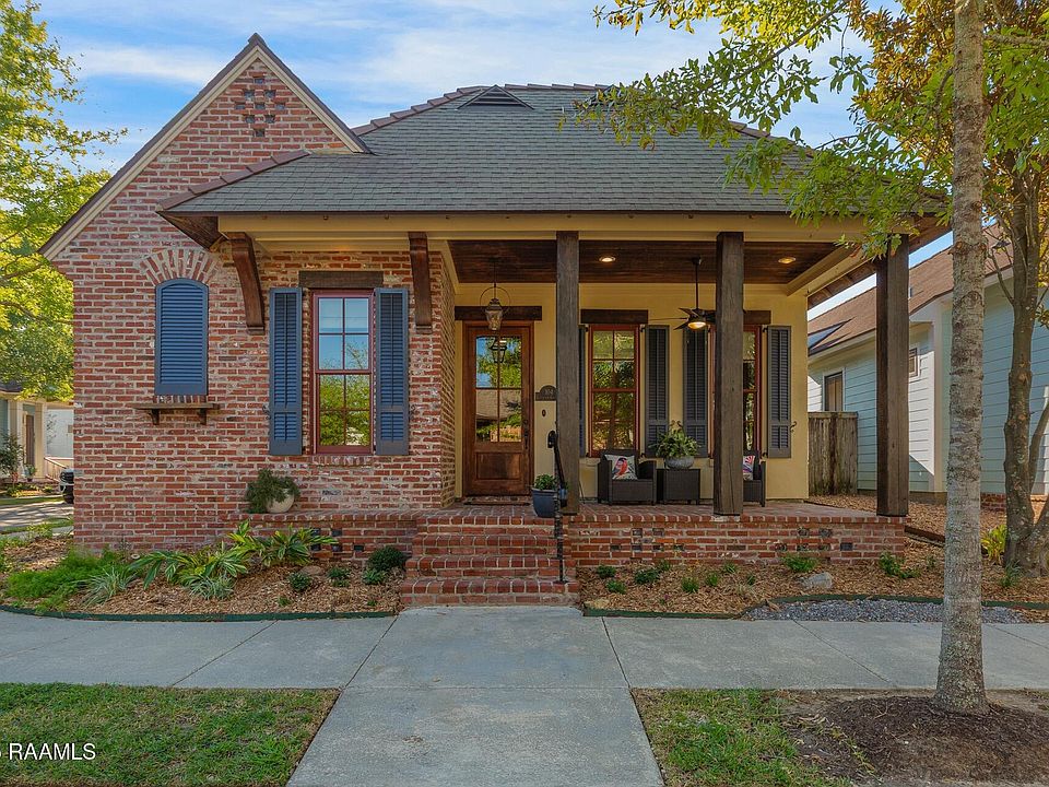 Warm and inviting inside and out! A classic creole cottage in River Ranch. This single level home boasts 3 bedrooms, 2 baths and a separate office with a split floor plan and tons of curb appeal. Antique brick, brick porch, freshly painted exterior and fresh landscaping welcome you in. The entrance foyer flows toan open floor plan where natural light abounds. The kitchen has slab granite counters and a large center island. The dining and living room boast antique hardwood floors, antique beams and a wood burningfireplace with gas starter enhanced with brick all seamlessly connected to the patio with privacy brick fence. Total privacy for the primary suite featuring antique hardwood floors and a beautiful bath with a new soaking tub, dual vanities, separate shower and walk in closet. Guest rooms and guest bath are located off the foyer. The private slate patio brings together the indoor/outdoor living experience. Generator included is a plus! Great location on a corner lot minutes away from walking path and park along the river