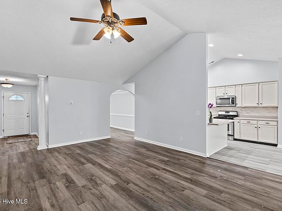 First floor Primary Suite, split floor plan, fenced in back yard, seller open to loan assumption! What more could you ask for!? As you're entering the property, first you'll step onto the large southern front porch. After going through the front door, to your left you'll see a formal dining area and to your right an office space, with vinyl plank floors throughout the entire floor. Continue from the entry way to the living room featuring vaulted ceilings, peering into the kitchen and breakfast nook. To the right of the living room, there are two bedrooms and a shared bathroom. To the left past the kitchen, the primary suite features an ensuite bathroom with dual vanity, stand-alone shower, soaking tub, and walk in closet. Last but not least the home features a finished room over the garage! Before reaching the backyard, you'll see a screened in porch perfect for entertaining pest free.