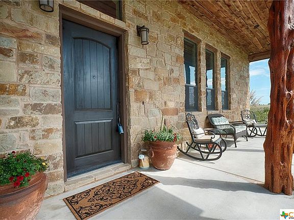 Custom private ranch style home with amazing country views on 1 acre with detached workshop. Great open concept with high ceilings and an abundance of natural light. Upgraded hard wood & tile flooring. Solid wood doors, stately stone fireplace. Kitchen features knotty alder cabinetry, Teflon deep basin sink, granite countertops, and gas range. Large open dining area, spacious master suite with bay window, large open private master bath, and walk-in closet. Large utility room with area for a second refrigerator, tons of storage and loaded with upgrades. Large covered outdoor living area with outdoor fireplace and fan. Spacious garage, and detached workshop on property. Hurry, this special slice of Texas heaven will go quick!