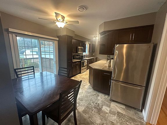 Cozy 4 BDRM, 1.5 BATH bungalow with single paved driveway, detached garage, and shed for all your storage needs. Nicely situated on a 9900 SQ FT lot within the town of Port Hawkesbury, within walking distance to all amenities. The kitchen has granite countertops, fridge, stove, microwave and dishwasher included, patio doors off the dining area that lead to the back deck which is ideal for entertaining. Beautiful hardwood floors in the living room, hall way, bedroom, and primary bedroom. The home is heated by oil fired hot water furnace and a wood stove in the basement that has been recently W.E.T.T. certified. New steel oil tank replaced in October 2025. The basement has rec room, laundry/utility area, storage room and 1/2 bath.
