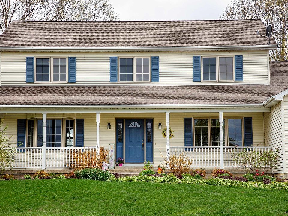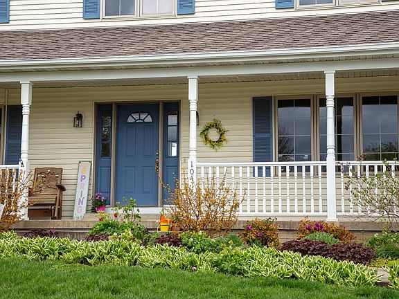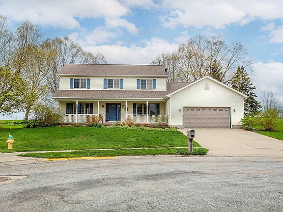 Serenity living at its finest! Situated on a private cul-de-sac overlooking the country, this 2 story home boasts of 5 bedrooms and 3.5 baths. Upon entering from the charming front porch, you will find beautiful hardwood flooring leading into the open living space. Custom windows outline the gas fireplace to make winters cozy in the spacious living room. Opening into the dining and kitchen, new laminate flooring and lighting have been installed. The golden oak cabinets provide ample storage along with the large pantry. Separated by a pocket door, the laundry and mud room area connect the kitchen to the garage. Circling back to the front of the home, there is a formal dining area, half bath and a den with French doors. Upstairs you will find a sizable master bedroom with a walk-in closet and a full master bath. In addition, there are 3 other bedrooms and a full bath with double sinks. In the lower level you will find a massive family room, another bedroom, bathroom, and an abundant amount of storage space. The 3 stall attached garage also provides even more storage. Stepping out onto the back patio from the dining area, you will be surrounded by nature! Check out the sunset, watch the deer, or entertain in the spacious yard! Many plants and perennials adorn the landscaping making this home a true tranquil paradise! Call today for your private showing!