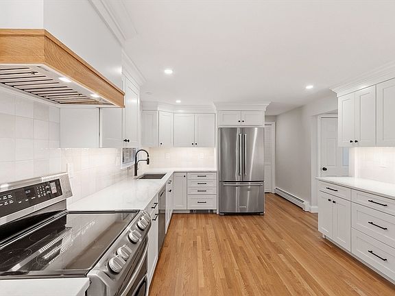 Set in one of Sudbury’s most sought-after neighborhoods, this beautifully updated home blends style, function, and comfort. The new kitchen shines with white shaker cabinetry, dolomite counters, stainless appliances, custom vent hood and hardwood floors. A stunning vaulted family room filled with natural light, featuring a floor-to-ceiling brick fireplace, wood stove, ductless A/C, and access to a screened porch with mahogany deck. Formal dining room and a front-to-back living room with fireplace flank the elegant foyer, providing inviting entertaining spaces. The primary suite offers a walk-in closet and a newly renovated spa-like bath with tiled shower. Three additional bedrooms share a renovated full bath. Additional highlights include hardwood throughout, central A/C upstairs, replaced windows and a partially finished basement with office, bonus room, and two walk-in storage areas. A 2-car garage and privacy complete the package. Luxury and location—move right in!