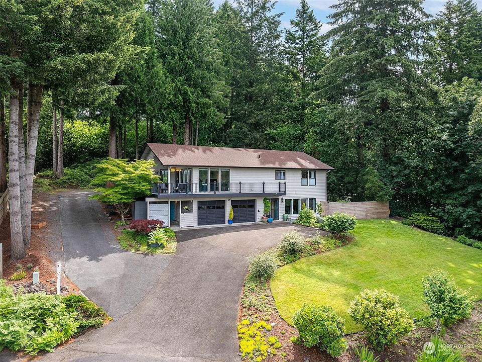 Impressive solid construction and thoughtful design featuring flexible living options, including a private entrance for extended stay or additional income. Covered sitting area outside the front door. Living room boasts ample natural light and scenic views. Recently updated plush architectural carpeting throughout. Spacious kitchen and fenced backyard offer ample room for relaxation and entertainment. True two-car oversized garage with workshop space. Additional updates include new interior and exterior paint, heat pump, well filtration system, fencing, generator with new transfer switch and three outdoor sheds. Convenient freeway access and close proximity to shopping and dining. Reliable Comcast cable/internet and excellent cell service.