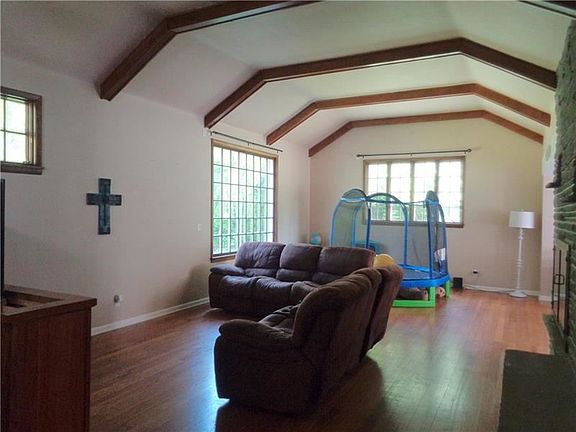 Seclusion! Nestled On A Private Setting Of Almost 5 Acres This 5-6 BR 4 Full Bath Beauty Offers 4 Levels Of Living Space. Stone Wall w/Gas FP, Hardwood Through Out. Spacious Eat In Kitchen, Formal DR, Beamed Cathedral Ceilings. Massive Master and Bath. Plenty Of Space In and Out. Plus A Dream 5 Bay Garage, Patio and Porch. Whole House Fan and Central Air.