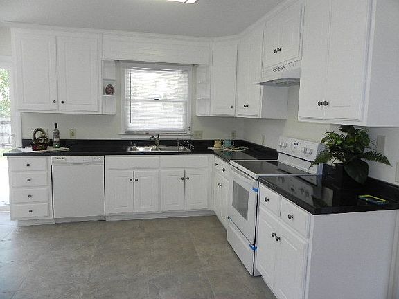 This home has so many updates. New faucets, cabinets, counter tops, ceiling fans, range, water heater, wood floors and new tile. Wood burning fireplace in living room. Eat in kitchen and separate dining room. Clean and move in ready!