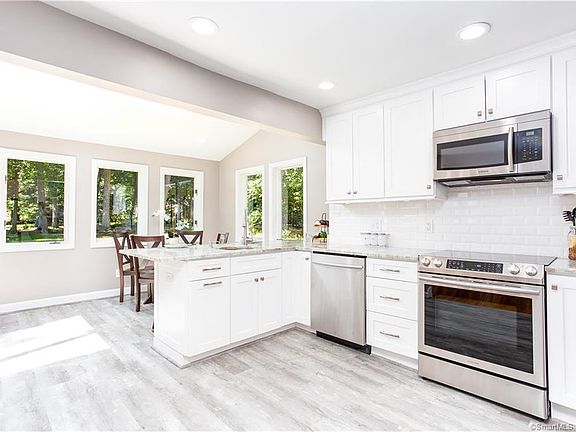 Dont miss this opportunity to own this completely renovated 4 bedroom, two full bath cape style home on over 3/4 of an acre lot! Nothing to do but move-in and enjoy your summer days and evenings on your private patio, overlooking your level, expansive rear yard. This home features newly renovated eat-in kitchen with breakfast bar, vaulted ceiling, white maple cabinets with slam proof dove-tail doors and drawers, granite countertops, tile backsplash, and higher-end stainless steel appliances. Both bathrooms have been completely remodeled with granite vanities, mosaic floor tile and subway wall tile with chair rail. Wood-burning fireplaces in both the living room and family room. Refinished hardwood floors throughout. Patio access from both kitchen and family room. Additional features include master bedroom with walk-in closet, central air conditioning, 2 car garage, 200 amp electrical service, new vinyl siding, thermapane windows, new interior and exterior doors, and a freshly painted interior. No detail has been missed!