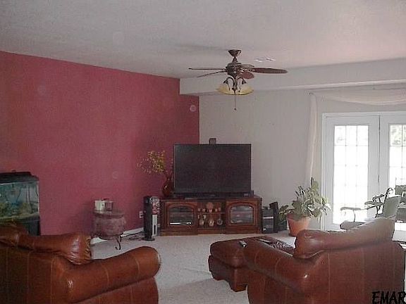 This property rests just north of Pheasant Run Golf Course in the Whispering Hills Addition. It rests on slightly over 1 acre per assessor records and was built in 2004. There is a storm shelter and nice storage building with overhead type door. The bedroom arrangement is the split bedroom type with one of the rooms being either a bedroom or office.