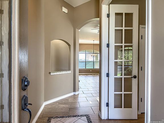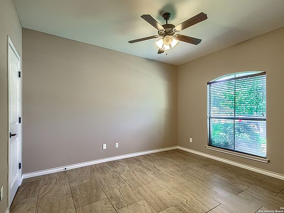 Very Nice 4 bedroom/2 full bath home situated in Westover Sub. just across from La Vernia Primary School. Home has open floor plan w/rock fireplace in living room, 11 ft ceiling and porcelain tile throughout the home. Nice entry w/niche in corner, double doors open into 4th bedroom or can use as study. Kitchen features custom cabinets, granite countertops, new dishwasher, new microwave, new vent a hood! Spacious dining area just off kitchen with door leading out to covered patio. Primary bedroom and bath features ceiling fan, built-in storage bench, tile floors, separate tub and walk-in shower w/walk-in closet, double vanity. Custom blinds were installed when purchased home, new landscaping (grass) and sprinkler system. Garage floor will be covered with epoxy kit. Privacy fence has been repaired, roof just 2 years old and facia board repaired and painted for fresh new look. More grass coming to front yard. Home is located just across La Vernia Schools and shopping just down the street!!