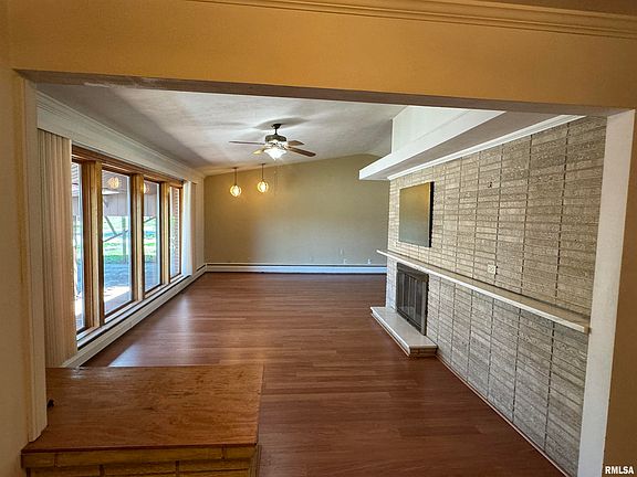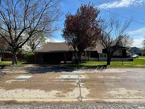 Welcome to this amazing ranch home located on a corner lot just a few minutes from downtown Flora! This brick home built in 1947 must have been a spectacle in its time. This home has so much to offer, with approximately 2000 square feet, large rooms, 2 fireplaces, attached garage & outdoor courtyard area, you will not be disappointed! You enter the home via a small foyer which leads you to the French doors. Upon entering the large foyer you will be captivated by the large brick fireplace in the spacious living room with vaulted ceilings, crown molding & large windows that provide an immense amount of natural light. Just off of the living room area is the formal dining room which is adjacent to the U shaped kitchen which has lots of cabinets & counter space. The utility room is just off the kitchen & has a laundry sink & built in cabinets. The den has another amazing fire place & built in shelves for your books or collectibles. The master bedroom has plenty of room with lots of natural light & has a wall full of built in's that you can put your clothes in as well as dual closets. The ensuite bathroom has a walk in shower with the retro wall tile. The other 2 bedrooms are adequate size with large windows & 1 has built in's also with the guest bathroom nearby. The home has a 2 car attached garage with attached carport. There is a small sunroom that leads out to the bricked courtyard area with a patio that has plenty of privacy for those nice evenings with friends & family.