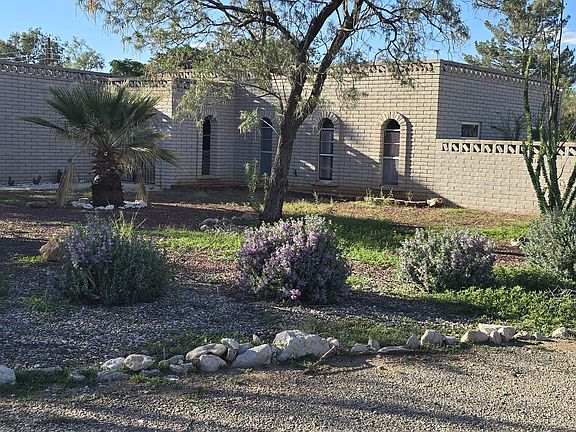 Southwest Slump Block Tucked into a quiet cul-de-sac in the Village of Sunsites, this all-electric 3-bedroom, 2-bath home with oversize 2 car garage sits on a generous half-acre lot surrounded by well-kept neighboring properties. A welcoming front courtyard sets the tone, leading to solid slump block construction and classic Southwest charm. Inside, the spacious living room features a striking fireplace and rich Mexican Saltillo tile flowing through the kitchen, one bedroom, and bath. The kitchen offers oak cabinetry, granite countertops with abundant storage. Comfort is assured with AC and forced-air heat. The large fenced backyard includes alley access--ideal for extra parking ( RV,'s), utility access, or future improvements. Move-in ready