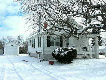 VINYL SIDED CAPE COD WITH FRONT PORCH. FULLY APP KITCHEN. NEWER FURNACE W/ CA. NEWER LR AND KITCHEN FLOORING. ALMOST 1 ACRE LOT. DEEP 1 CAR GARAGE W/ OPENER & NEWER GARAGE DOOR. DECK IN BACK.