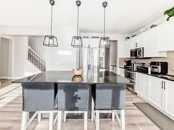 A beautiful and thoughtfully updated home nestled in the Lakepointe community of Chestermere. With 3,680 sqft of developed living space, this house offers everything a family needs. From the first moment, you’ll feel the warmth: the front porch welcomes you in, and fresh paint, new flooring, and updated lighting feel modern. The main floor flows easily. At the front, there’s an office perfect for work from home. The dining room connects - via a butler’s area and walk-in pantry - to a light, updated kitchen with two-toned cabinets, granite counters, and newer appliances. The adjoining eating area is both bright and open, and you’ll enjoy the open family room with large windows and a cozy gas fireplace. Upstairs, a spacious bonus room provides a flexible family space. The primary bedroom is your calm corner, with a massive walk-in closet, a double-sink vanity, a separate shower, and a deep soaking tub to unwind. Two more large bedrooms and a full bath round out this level. The fully finished basement includes a fourth bedroom, a full bathroom, and a rec room built for movie nights - complete with 1902 reclaimed barnwood, an electric fireplace, built-in speakers and a wet bar. Tucked off to the side is a small workshop - perfect for tools, tinkering, and hobby projects. Out back, you’ll love the huge deck with a pergola, and mature trees around your yard for extra privacy. And there’s a built-in gas line for the BBQ. This home also includes a double attached garage, a backyard shed for extra storage, plus air conditioning for those warm summer days. And this is also about where you live. Lakepointe is a family community. There are walking and biking paths, playgrounds, and you’re a short walk to Chestermere Lake, where you can enjoy summer by the water, bike rides with the kids, or quiet weekend strolls. This isn’t just a house. It’s the next chapter in your family’s story - a space built for memories. If you’re looking for a home that’s as functional as it is warm, and as modern as it is welcoming, this is the one!