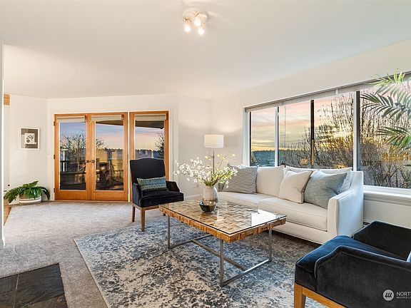 Spacious contemporary home takes full advantage of sweeping views over Ballard, the Ship canal, and Olympic mountains! Set above it all at the top of a very private street in a convenient location where Fremont, Phinney Ridge & Ballard meet. The smart design allows for views from all 3 levels, and flexible use of space. Currently utilized as a 3 bedroom/3 bath home + an income-generating 1 bedroom/1 bath ADU on the first level, this space could also be view office, guest suite, gym, or rec room. Walls of windows & covered indoor-outdoor access make it easy to entertain and enjoy the views year round. 3 beds/ 2 baths up including view primary suite! A short stroll to shops, dining, parks + transit for easy commute anywhere. Garage + carport.