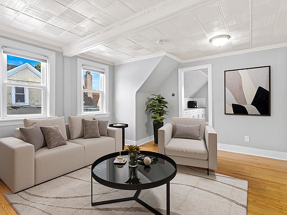 Newly updated 1 bedroom home located on one of Weehawken Heights' most beautiful tree lined streets. Windows on three sides drench this space with tons of natural light and accentuate the gleaming hardwood floors and crisp white tin ceilings. The eat in chef's kitchen is perfect for creating culinary masterpieces, offering stainless steel appliances, more than ample quartz counter space and white shaker cabinet storage. A large, hotel inspired bathroom includes a beveled subway tile wrapped shower with tub and frameless shower glass. Door to door commute to Port Authority is 17 mins. A very convenient gourmet deli and wine store is located just next door.