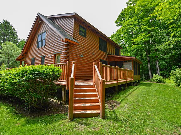 Private Log Home in Mount Holly available for the 2025/26 winter ski season - Located just 8 miles from Okemo mountain and situated at the end of a private road, this beautiful home offers complete seclusion and relaxation. A mudroom with laundry closet and half bath leads to the open kitchen and living area which is ideal for gatherings. The kitchen is well equipped with a gas stove, dishwasher and breakfast bar. The dining table offers seating for six and flows to the living room with a cathedral ceilings and wood fireplace. The primary bedroom suite is also on the main level and provides a king bed, TV, and spacious bathroom with jetted tub and separate shower. Upstairs, the loft area connects two bedrooms, one with a queen bed and the other with two twin beds, and a shared bathroom. The fully finished walkout basement provides additional sleeping space for kids or guests, as well as another full bathroom. The VAST snowmobile trail and Lake Ninevah are very close so bring your snowmobiles and ice skates! Renting in Mount Holly is desirable for many as it means that you don't have to sit in traffic going to and from Okemo/Jackson Gore - which means more time on the slopes and at the Log home! 4WD vehicles with winter tires recommended. Also a quick drive to Rutland City for a variety of shopping and dining options.