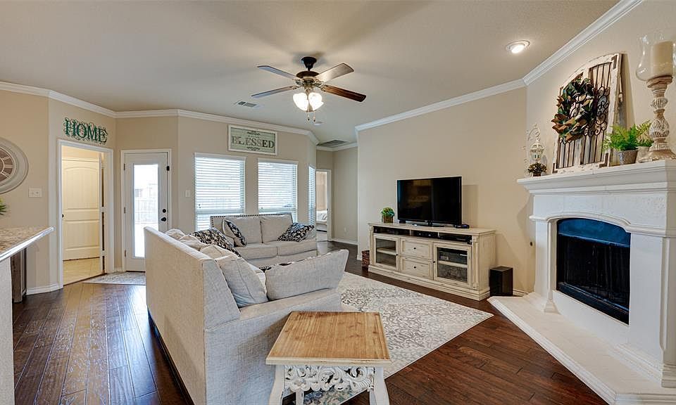 Charming drive-up appeal on this spacious 4-bedroom, 3-bath home located in the sought-after Parkside subdivision! Featuring engineered wood flooring, an open-concept layout, and abundant natural light throughout. The expansive kitchen boasts slab granite countertops, stainless steel appliances, a gas cooktop, center island, bar seating, and a cozy breakfast nook. The generously sized primary suite offers dual vanities, a separate shower and soaking tub, and a walk-in closet. Enjoy outdoor living with a large covered patio and sizable backyard. Conveniently located near Hwy 78, Firewheel Town Centre, shopping, dining, and more!