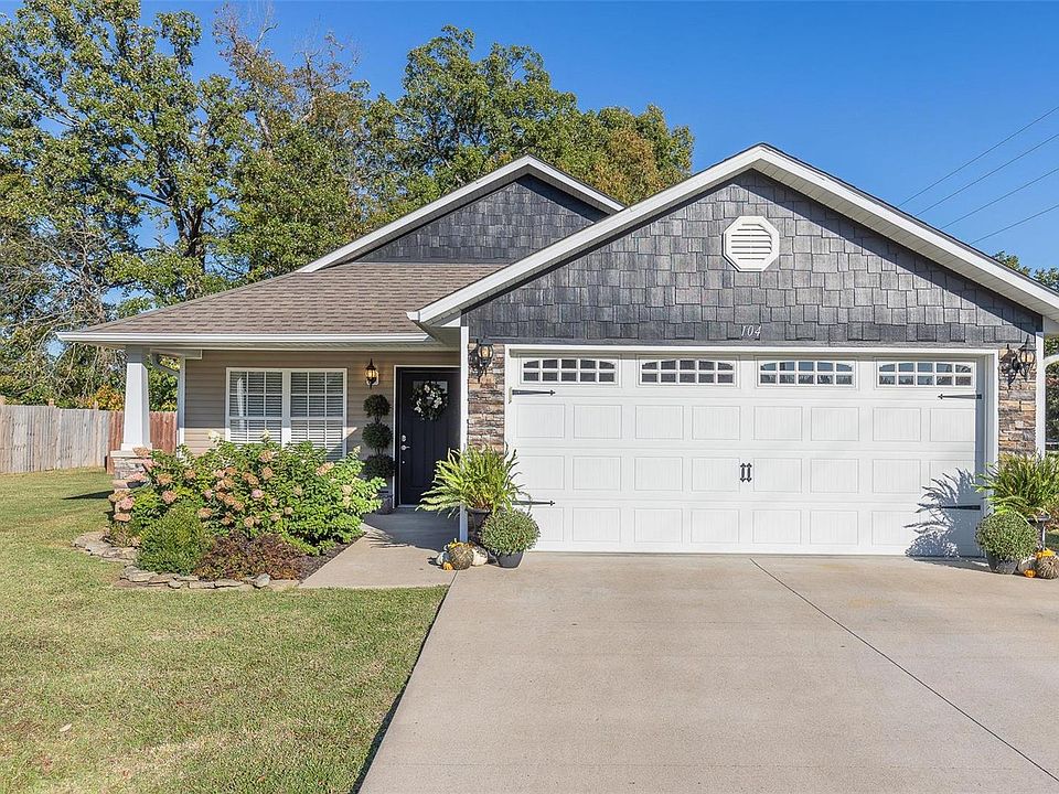 Delightful craftsman-style home that exudes warmth and charm throughout! Sitting on a corner lot, the exterior includes landscaping with gorgeous blooms in the warmer months, stone accents and covered front porch ideal for a cup of morning coffee. Inside, the bright and airy interior offers an open living area with electric fireplace, vaulted ceiling and large, west-facing window allowing in golden afternoon light. In the eat-in kitchen you’ll find stunning quartz countertops, timeless subway tile backsplash, stainless appliances and walk-in pantry. The master bedroom offers a sizable walk-in closet as well as attached bathroom with custom tile shower and tub. Down the hall you’ll find 2 additional bedrooms perfect for guests, kids, home office, you name it! Through the back door you’ll find your own backyard sanctuary with patio complete with pergola supplying shade and privacy-fencing backing to woods lending a feeling of seclusion while just minutes from the conveniences of town!