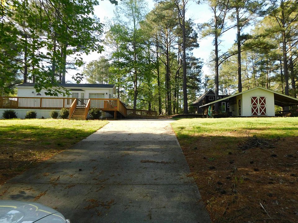 MUST SEE!! 2006 Park Model on a double corner lot located in the beautiful Lake Royale community. This property features a large deck for entertainment space, a 12x12 Storage Building, 33x13 Park Model home that has a lot to offer such as light colored Flooring throughout! Spacious Living Room surrounded by Windows with great natural lighting . Cabinets as well as counter space in the kitchen which also features a Stove, Microwave, Dishwasher, Corner Sink, Refrigerator and Nook Area. In the Primary Bedroom you will find two closets , a Full Size Bath and laundry space to include a Washer & Dryer! Central heat and air. Come out and see the beauty !! It wont last long!!!