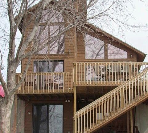 Inside this modern home are 3 bedrooms and 2 baths. Invite your friends and family for the weekend and you can put them all up in the 200 square foot loft bedroom that comes with a large bathroom. The main floor master bedroom is spacious with access to the main floor bath. You don't have to go down to the lake to have a beautiful view. The main floor living room, the dining room, and the basement family room all have wonderful views of the lake. Or you can step outside on the large deck, big enough for entertaining a large group of friends or family. This house is move in ready. All kitchen appliances and all furniture remain with the home. Down at the lake is a finished patio for entertaining even more family and friends. A finished block sea wall, dock, fire pit, and a small sand beach make it easy to enjoy lake side living. Excellent location off the paved city lake road, the driveway to this property pulls up to a oversized three car garage. Priced to sell at $214,900