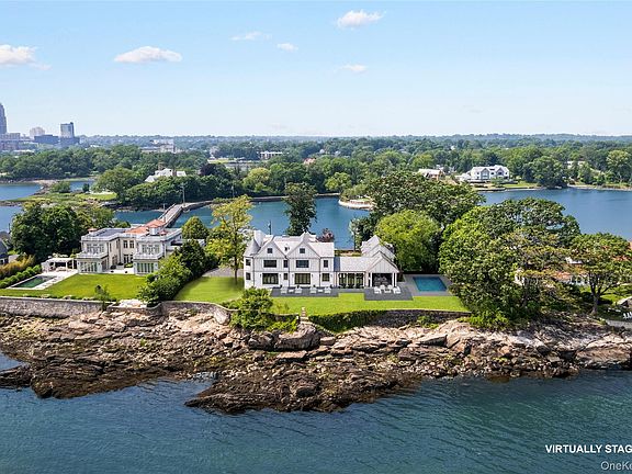 Welcome to Four Seasons waterfront living! Introducing this brand-new Malibu-cool stunner beautifully situated atop a private peninsula overlooking Long Island Sound and backing onto the tranquil waters of Premium Mill Pond. This Architectural Digest-quality home is the creme de la creme of an exclusive guard-gated community that’s just 35 minutes from NYC in the town of Mamaroneck. Such an opportunity is once in a lifetime - a spectacular 1.3-acre seaside sanctuary with 360-degree water views, neighborhood beach and boat slips, plus a magnificent entertainer’s patio and covered outdoor kitchen with pool and hot-tub to be built. Every inch of this 8-bed, 10.3 bath home is sparkling new unparalleled luxury, laid out over four floors with elevator service. A masterpiece of design, it boasts walls of glass for a panorama of pure uninterrupted bliss from sunrise to sunset. Each space is breathtaking – from the dramatic open concept family and living rooms to the sensational kitchen with two islands, adjacent butler’s pantry/wet-bar and seriously stylish dining room. A serene office also doubles as a 1st-floor ensuite bedroom. The primary suite dazzles with never-ending water views, spa bathroom and 2 walk-in closets. There’s a fabulous upstairs rec room, 3 laundries, mudroom, wine room, sprawling custom gym and 3-car heated & cooled garage. Simply one-of-a-kind!