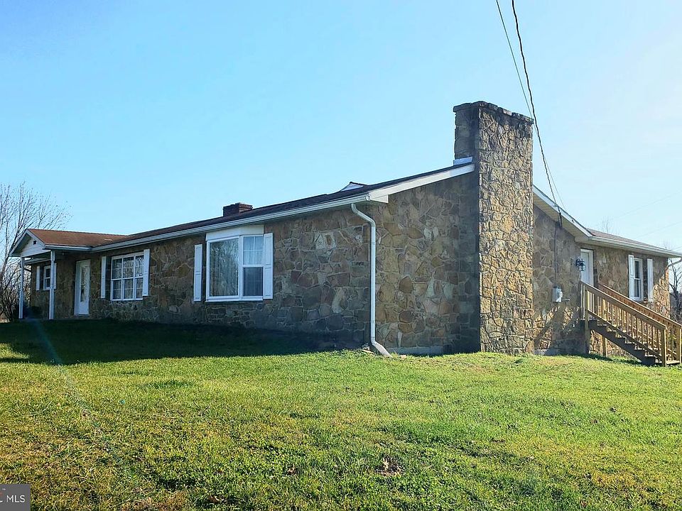 One of a kind...Local Stone from Tomahawk covers this sprawling 3 bedroom rancher. Large open Kitchen offers plenty of oak cabinets for storage. Brand new LVP flooring in Kitchen, Dining & Bathrooms. Kitchen & dining areas have been freshly painted. So much character here with everything you need on main level including the laundry. The real show stopper is the massive great room with cathedral beamed Cherry wood ceilings and a room length stone fireplace with metal hinged doors, just imagine years and years of family gatherings & pictures to be taken in this room...This addition to the home was added in 1976 and year is carved in stone above fireplace. Come Live in the country, surround yourself with horses, cows, farms & enjoy the Beautiful rolling hills and amazing sunset views.