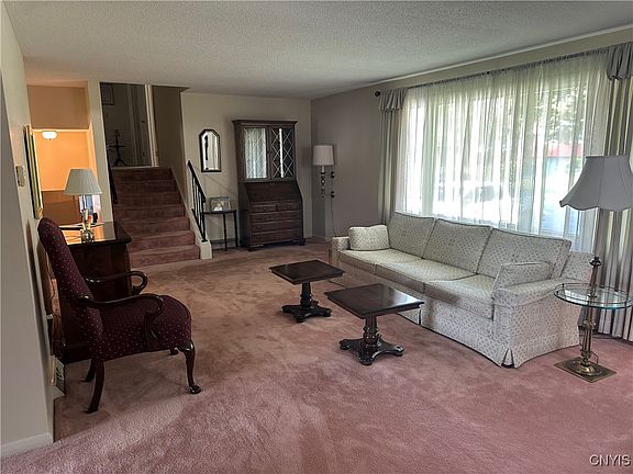 Welcome to this meticulously maintained split level home, offering 4 spacious bedrooms, 2 1/2 baths, and plenty of room to spread out. The bright kitchen features granite counters, cherry cabinets, stainless steel appliances and a eat-in area. Hardwood floors will be found throughout the first floor and up stairs in all four bedrooms the living room and dining room have unfinished hardwoods underneath the carpet. The hallway/stairs upstairs is all finished hardwoods under the carpet. A versatile bonus room makes a perfect office/den/playroom whatever suits your needs. The offie/den/playroom has an entrance to the backyard and a gas fireplace for those cool winter nights. The lower finished basement provides additional 400 sq ft of living space that is not included in the listing sq ft. Outside you'll find a fully fenced yard ideal for pets, play or entertaining. A 3-Season sunroom 12 1/2X 11 with sliding windows all around provides a bright retreat. This room adds additional living space that is not included in the listing square footage. Underneath the 3 season room is storage with a concrete pad with a small access door. The backyard is private with white vinyl fencing all around. There is also built in built in brick grill on the outdoor patio. The two car garage has recently been epoxy painted and has heat and central air which is a bonus. The roof is only 3 years old and has a transferrable warranty. This home is located in an exceptional neighborhood in the desirable West Genesee School district. This move-in ready home truly has it all! Don't wait! **ONLY SHOWINGS AFTER 11 AM ANY DAY**