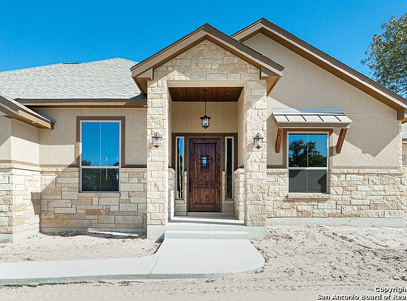 Welcome Home! You will fall in love with all the neat features this house has to offer. Through the gorgeous 8'X42" knotty wood front door you will find an open concept living space with exposed beams, that flows from the formal dining room, in the living room, and into the kitchen. The kitchen has custom hickory cabinets, under cabinet lighting, stainless steel appliances(including a drawer-style microwave), a huge walk in pantry, and a leather finish granite that fits the house perfectly! The good sized bedrooms are split from the master and have a bathroom in between them with a double vanity. In the master suite you will find a hickory barn door leading to the relaxing master bath. Complete with 2 walk in closets, a double vanity, and a garden tub separate from the walk in shower. The house has 2 HVAC units, is pre-plumbed for propane(for those who prefer gas cooking), and also has a 320 AMP electrical panel that is ready for you to add a pool or outbuilding. Builder is also putting sod and a 5-zone sprinkler system around the house. The neighborhood has a pond with a walking trail around it, on Hidden Pond Dr.