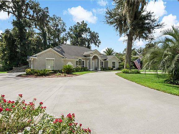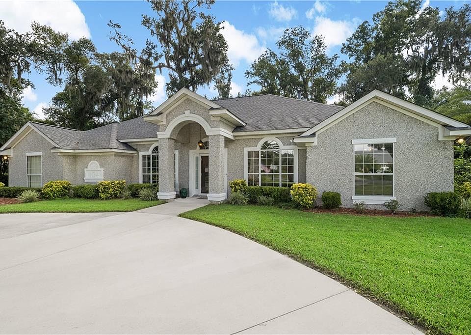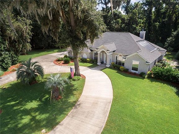 Situated ideally on the Satilla River the community of Royal Oaks is a remarkable example of Living the Coastal Georgia Dream & from the lush tropical landscaping to the "Tabby Shell' exterior this beautiful home is suited perfectly. It has a fantastic open floor plan with wood-like tile flooring throughout the common areas. There is plenty of room for gatherings in this 4br/2bath home: designated Dining Room, large Den/Office, Living Room with cozy fireplace. The kitchen is tastefully upgraded with stainless steel appliances, granite countertops, breakfast nook & ample cabinetry. The Owner's Suite is a peaceful retreat with Spa-like Bath to include: relaxing soaking tub, separate shower, double vanity & gorgeous tile. The inviting outdoor space is the focal point of this home which features a lovely lanai porch, solar heated pool & screened enclosure that is accessible from the owner's suite & living room. Community Amenities: River, Marina, Dock, Boat Hoist, Boat Storage & lake.