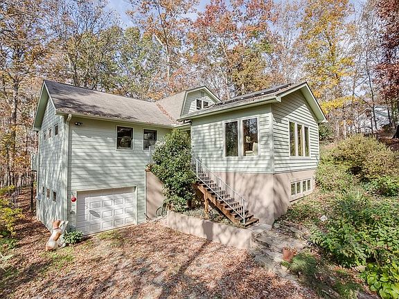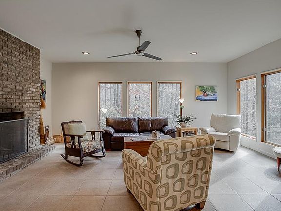 You'll enjoy serene living in this country cabin home situated on a private wooded lot. This home features recessed lighting, radiant heated tile floors, wood burning fireplace in the family room, eat-in kitchen w/ granite countertops & wood stained cabinets, master on the main level w/ vaulted ceilings, hardwood floors and en suite w/ shower, two additional bedrooms upstairs feature shiplap accent walls & a workshop. Catch a view of the mountain from your screened-in porch or extended deck w/ hot tub that remains.