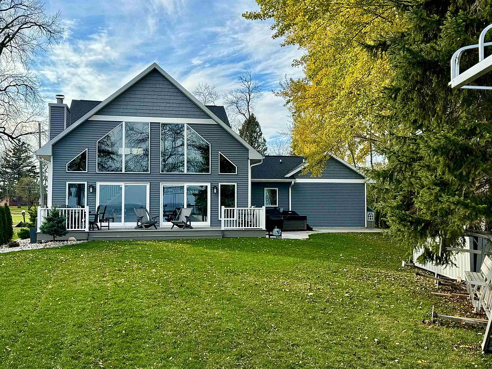 Indulge in the ultimate lakefront living experience with this magnificent custom home, nestled in the highly sought-after Neenah school district. The property's breathtaking views create a tranquil ambiance, reminiscent of a relaxing vacation. This stunning home features an impressive array of luxurious amenities, including expansive floor to ceiling windows, a cozy wood fireplace w gas, and a chef-inspired kitchen with a sprawling 10-foot granite island. Additional highlights include soaring 20 ft cathedral ceilings, a spacious basement for storage, and exceptional quality throughout, exemplified in the maple cabinets, solid maple trim, solid doors, casement windows & more... You could easily add a 4th bd in loft area building a wall. Schedule your showing today & enjoy the views.