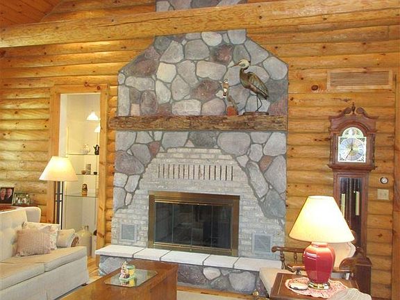 Oh my!! FABULOUS modified log home on almost 1 acre lot. Trees, wildlife & deer in your backyard! You will feel that you're living in a lodge at a resort location. Very open. Glorious tall vaulted ceilings that are 9 ft & higher. Hickory cabinets & floors. City water & sewer. Come see & be ready to fall in love!