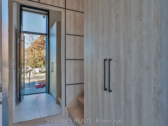 Welcome to 104 Roosevelt Rd, a spacious 2-storey legal duplex on a wide 37' lot in East York. Total legal living space of 3,200+ sq ft. Directly across from open green space and public tennis courts, this home offers rare tranquility in the city. Inside, you'll find 5 bedrooms and 3 full bathrooms upstairs-perfect for large families or multi-generational living. The main floor features soaring 10' ceilings, an open-concept layout, a dedicated office, built-in speakers, and a walkout to a generous backyard deck. The chef's kitchen is equipped with abundant cabinetry, a wine shelf, and modern finishes. Upstairs ceilings reach 9', adding to the airy feel.The basement impresses with 8.5' ceilings, super-sized windows that flood the space with natural light, a legal kitchen, two full bathrooms, and potential to create two separate rental suites-ideal for income or extended family. With a spacious backyard, attached garage, and proximity to top-rated schools, TTC, and Danforth shops, this property blends comfort, convenience, and opportunity in one of Toronto's most desirable pockets.