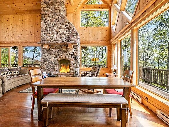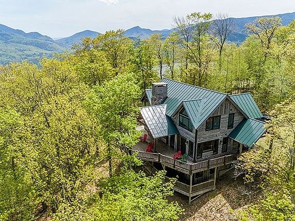 This is the Adirondack mountainside chalet you've been dreaming of! Sip a drink while relaxing on the 1500 square feet of outdoor deck space while taking in the sprawling 270 degree view of Giant and Hurricane Mountains from 1300 feet above the valley floor. The interior features classic Adirondack styling paired with exceptional quality modern building techniques. With 5 beds and 5 1/2 baths over 3 floors and 3200 sqft of living space there is ample room for guests. Entertain in the open concept kitchen and great room with floor to ceiling windows. Gather around the custom laid stone fireplace and chimney that extends to the ceiling and has additional flues with a fireplace on the deck and a wood stove downstairs in the den. There is a bonus authentic ADK coped log lean-to outside making a great spot for evening s'mores or a fun outdoor sleeping experience. High speed internet on site. This house is a must see and will not last!