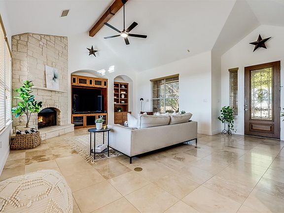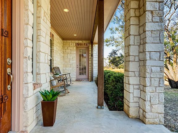 A beautifully crafted custom home on 6.5 flat acres, perfectly positioned on a cul-de-sac, corner lot, attached private casita, expansive screened-in patio, and 3-car air-conditioned garage in the gated Double Horn community. Backing to a seasonal creek, this property offers the perfect combination of privacy & Hill Country charm. Freshly painted throughout, the open-concept interior showcases travertine & wood flooring throughout the living room, dining, & primary bedroom. The gourmet kitchen features an island that opens to dining area & living room, where expansive windows frame picturesque views. The serene primary suite, showcases coffered ceilings, rich wood flooring, custom cabinetry & serene views framed by large windows. The spa-inspired bath pampers with dual vanities, a soaking tub, a walk-in shower & a generous closet. An attached casita with a separate entrance offers flexibility for guests. Step outside to an expansive screened-in back patio shaded by mature oaks or unwind on one of the multiple covered porches while taking in stunning Texas sunsets. The second bedroom has been converted into a home gym, featuring professional-grade flooring, while also adaptable as a bedroom. A home office includes custom-built-ins, while a spacious laundry room with a sink offers added convenience. The 3-car air-conditioned garage is perfect for car collectors, hobbies, or climate-controlled storage, complemented by an extended driveway. Recent improvements include a new roof in 2023, ceiling fans,interior paint throughout & more. Additional features include fiber internet, low tax rate, water softener and community well water. Enjoy a community pool, pavilion, playground, basketball court, & scenic walking trails, all just minutes from Marble Falls, Bee Cave, Lake Travis & Lakeway. Whether you’re seeking a primary residence or a Hill Country retreat, 104 Running Brook delivers unmatched serenity in one of Spicewood’s most desirable neighborhoods.