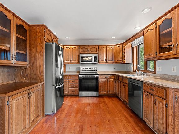 Welcome to this well-kept home in the heart of Saint Nazianz. Offering 3 comfortable bedrooms and 1.5 baths, this property blends charm with functionality. The inviting lower level includes a rec room with a cozy fireplace and a screened porch that opens to the backyard, or enjoying warm evenings. Upstairs, a deck provides additional outdoor living space. Nestled next to a beautiful park featuring year round koi ponds, the setting is peaceful and scenic while still being conveniently located in town. This home is in the Valders School district. A wonderful opportunity to enjoy small-town living with natural beauty right outside your door. Many updates to include New roof, Chimney Cap, Refrigerator, and dishwasher. New Patio door to be installed October 6th 2025.